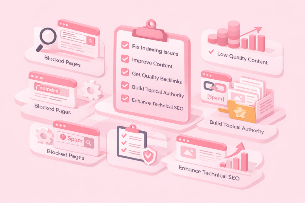 Sometimes Google crawls your site but decides not to index specific pages. In Search Console, you’ll see statuses like: